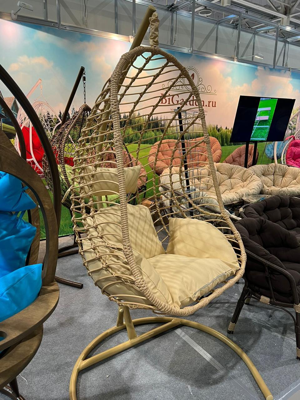 - Подвесные кресла из искусственного ротанга. Каркасы из стали, плетение ручное. Устойчивы к осадкам и солнцу. Каждая деталь продумана.